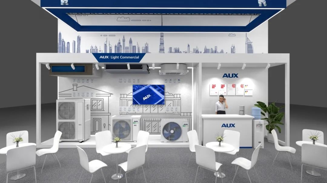 The exhibition is centered on "Technology Empowers Commercial Space". AUX focuses on the commercial air-conditioning field and builds an immersive display scene with its multi-split/light commercial product matrix. The booth design combines modern minimalist aesthetics with brand genes, with the iconic blue as the main color. Through the three-dimensional echo of the top light strip and the ground light and shadow device, it creates a space experience with both a sense of technology and visual impact. The TOWIN team plans four functional areas based on the visitor's movement line:The corporate brand wall uses a dynamic screen to display the global layout. The product display area uses transparent panel prototypes to present star models such as T3 R32 variable frequency light commercial and single cooling multi-link. The internal light strips outline the core technology structure. The negotiation area adopts a semi-open design and is equipped with intelligent interactive devices to achieve real-time demonstration of product parameters. Among them, the AI series (AUX Intelligent) products use scenario simulation to intuitively demonstrate the triple advantages of intelligent control, energy-saving efficiency and comfortable experience.